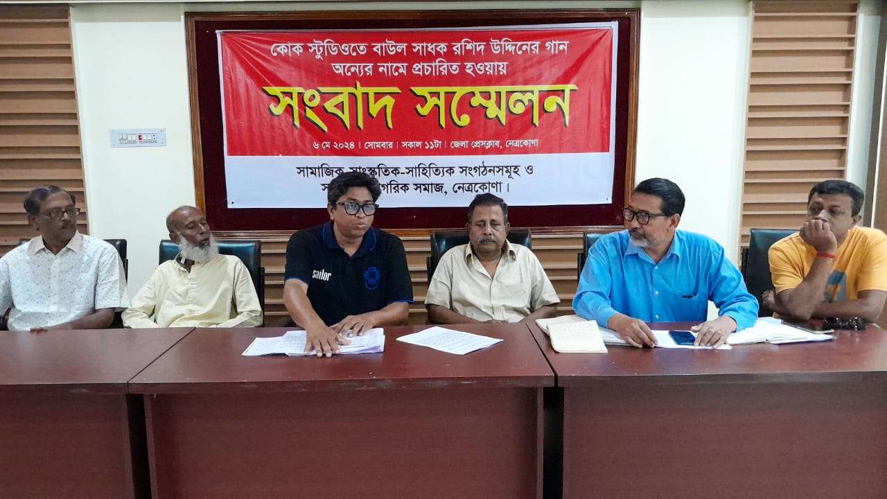 সংবাদ সম্মেলন ও মানববন্ধন কর্মসূচীর সঞ্চালনা করেন নেত্রকোনা সাহিত্য সমাজের সাইফুল্লাহ এমরান। এতে বক্তব্য রাখেন নেত্রকোনা-১ আসনের সাবেক সাংসদ ছবি বিশ্বাস, বাউল সাধক মরহুম রশিদ উদ্দিনের ছেলে মো. আবু আনসার কালা মিয়া, রাজুর বাজার কলেজিয়েট স্কুলের অধ্যক্ষ গোলাম মোস্তফা, সহাকারী অধ্যাপক সরোজ মোস্তফা, উদীচীর সভাপতি মোস্তাফিজুর রহমান, শিকর উন্নয়নের সভাপতি রফিকুল ইসলাম আপেল প্রমুখ।