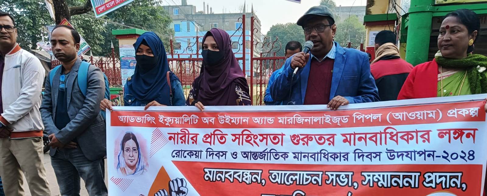 নিজস্ব প্রতিবেদক: বাংলাদেশ নারী প্রগতি সংঘ (বিএনপিএস) নেত্রকোনা কেন্দ্র কর্তৃক লিঙ্গভিত্তিক সহিংসতা বন্ধে ১৬ দিনের (২৫ নভেম্বর-১০ ডিসেম্বর) প্রচারাভিযান বা আন্তর্জাতিক নারী নির্যাতন প্রতিরোধ পক্ষের শেষ দিন ১০ ডিসেম্বর (মঙ্গলবার) বেগম রোকেয়া ও আন্তর্জাতিক মানবাধিকার দিবস উপলক্ষে আয়োজিত কর্মসূচিতে বক্তাগণ মানবাধিকার নিশ্চিতসহ সকল প্রকার বৈষম্য দূরীকরনে সম্মিলিতভাবে কাজ করার উপর গুরুত্বারোপ করেন।