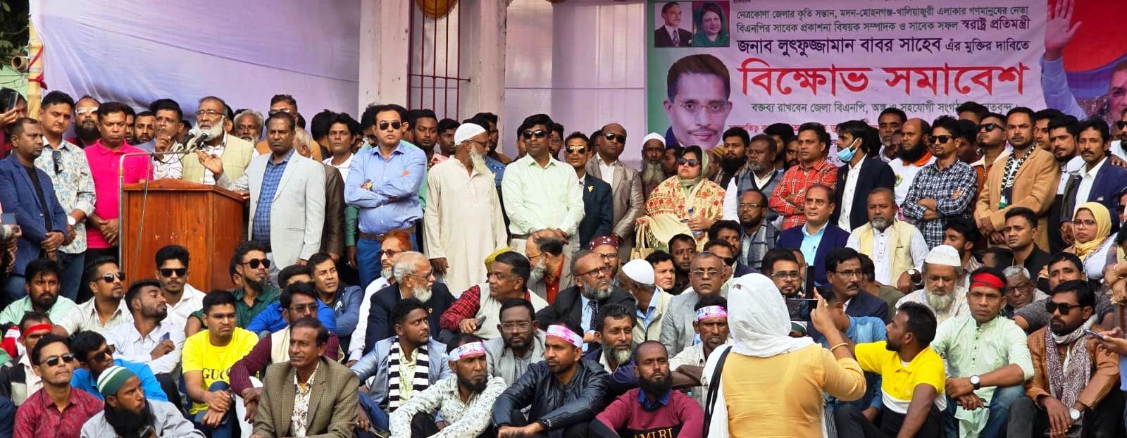 বুধবার (১১ ডিসেম্বর) বিকেলে নেত্রকোনা কেন্দ্রীয় শহীদ মিনারের সামনে জেলার কৃতি সন্তান মোহনগঞ্জ-খালিয়াজুর-মদন এলাকার গণমানুষের নেতা বাংলাদেশ জাতীয়তাবাদী দলের (বিএনপি) সাবেক প্রকাশনা বিষয়ক সম্পাদক ও সাবেক স্বরাষ্ট্র প্রতিমন্ত্রী লুৎফুজ্জামান বাবরের মুক্তির দাবিতে বিক্ষোভ সমাবেশে জেলা বিএনপি’র আহবায়ক ডা. আনোয়ারুল হকের সভাপতিত্বে এসব কথা বলেন সাবেক সাংসদ ও জেলা বিএনপি’র সাবেক সভাপতি বীরমুক্তিযোদ্ধা মো. আশরাফ উদ্দিন খান।