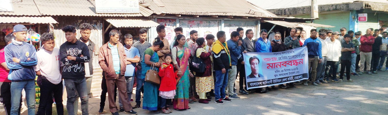 মানববন্ধনে বক্তব্য রাখেন, বাংলাদেশ আদিবাসী ইউনিয়ন নেত্রকোনা জেলা কমিটির সভাপতি নিরন্তর বনোয়ারী, নিহতের মেয়ে মীম হাজং, ভাই বাবুল হাজং, চন্দ্রডিঙা গ্রামের জিতেন হাজং, সুজিত হাজং, লবিংস্টল দাজেল, সবিতা হাজং, বাংলাদেশের কমিউনিস্ট পার্টির কলমাকান্দা শাখার সভাপতি সিদ্দিকুর রহমান, সাধারণ সম্পাদক মৃত্যুঞ্জয় তালুকদার, উপজেলা যুব উন্নয়নের সভাপতি শরীয়ত উল্লাহ প্রমুখ। তারা দ্রুত সময়ের মধ্যে শ্যামল হত্যার সাথে জড়িত ব্যক্তিদের সনাক্ত করে আইনের আওতায় এনে শাস্তির জোর দাবি জানান।