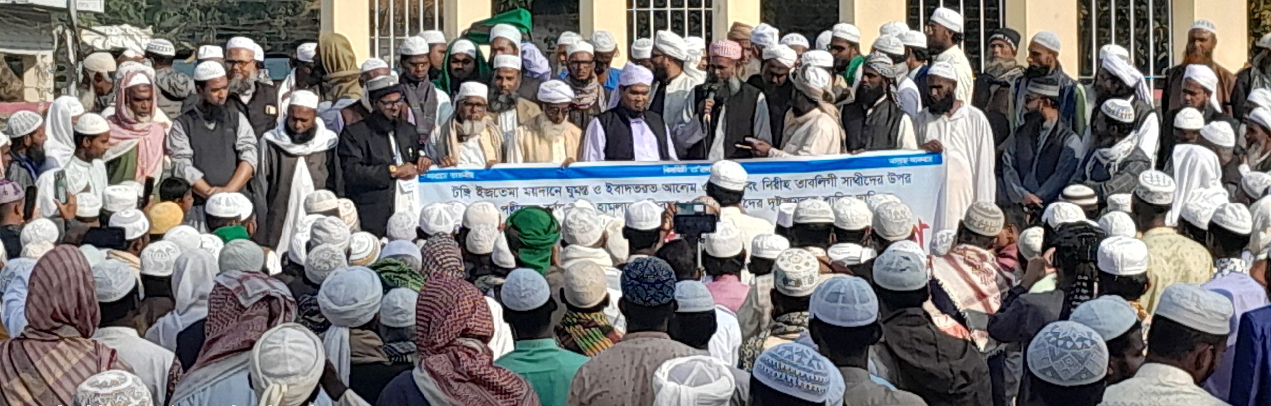 শুক্রবার (১০ জানুয়ারি) দুপুরে নেত্রকোনার কলমাকান্দা উপজেলা শাখা উলামা মাশায়েখ ও তৌহিদী জনতার উদ্যোগে বিক্ষোভ মিছিল ও সমাবেশে উপজেলার বিভিন্ন মাদরাসা, মসজিদ এবং এলাকার ধর্মপ্রাণ মানুষ স্বতঃস্ফূর্তভাবে অংশগ্রহণ করেন। নেতৃবৃন্দ টঙ্গি ইজতেমা ময়দানের সাম্প্রতিক ঘটনাকে ন্যাক্কারজনক ও বর্বর বলে অভিহিত করেন।