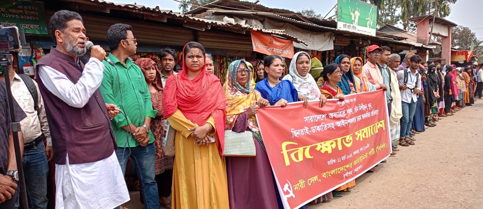 মঙ্গলবার (১১ মার্চ) বেলা ১১টায় দুর্গাপুর প্রেসক্লাব মোড়ে আয়োজিত এ বিক্ষোভ সমাবেশে সংগঠনের নেতাকর্মীসহ বিভিন্ন শ্রেণি-পেশার মানুষ অংশগ্রহণ করেন। বক্তারা সাম্প্রতিক সময়ে দেশে নারী ও শিশু নির্যাতনের ঘটনা বেড়ে যাওয়ায় উদ্বেগ প্রকাশ করেন এবং দোষীদের দ্রুত গ্রেফতার ও দৃষ্টান্তমূলক শাস্তির দাবি জানান।