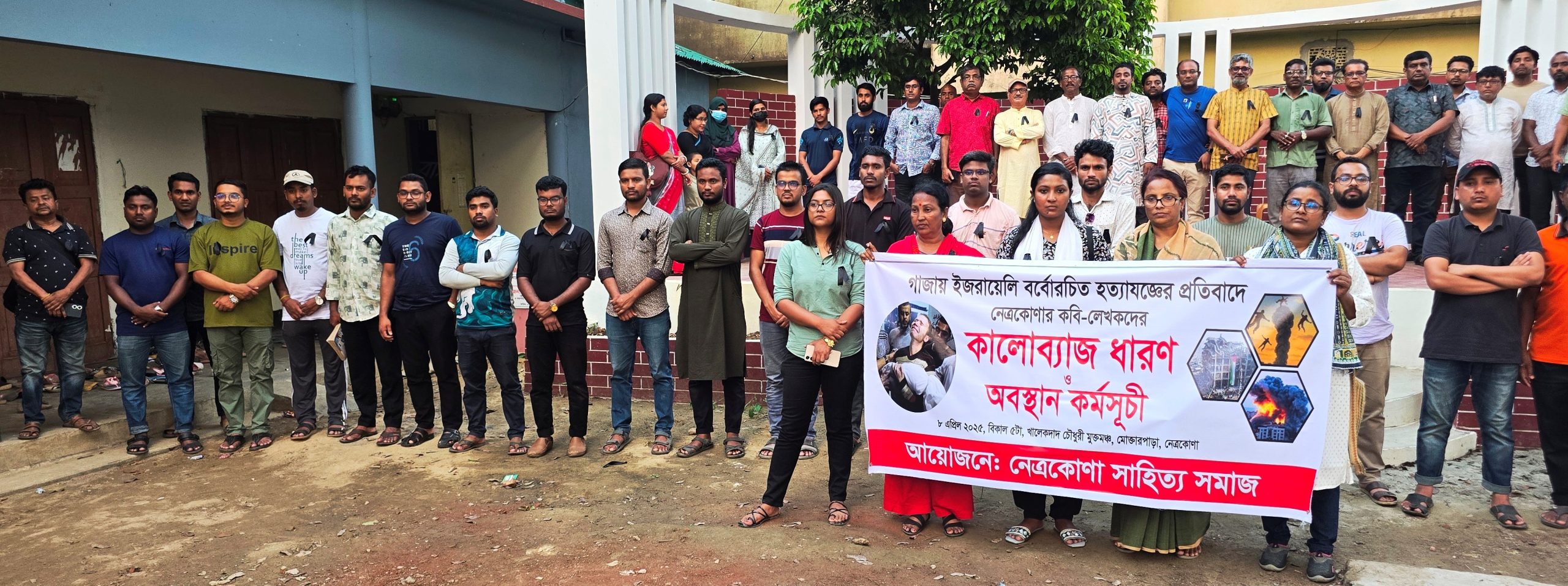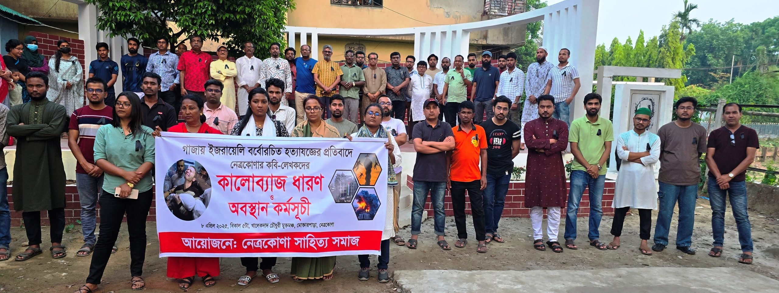 আমরা, “নেত্রকোণা সাহিত্য সমাজ” অন্যান্য সাংস্কৃতিক, সামাজিক ও রাজনৈতিক সংগঠনকে সাথে নিয়ে , গত ৭ এপ্রিল “দ্য ওয়ার্ল্ড স্টপস ফর গাজা” বিশ্বব্যাপী প্রচারণার সাথে আমাদের পূর্ণ সংহতি প্রকাশ করছি। আমরা ইসরায়েলি আগ্রাসনের তীব্র নিন্দা জানাই এবং ফিলিস্তিনি জনগণের সমর্থনে বিশ্ব সম্প্রদায়ের প্রতি আহবান জানানো হয় এই সংহতিতে।