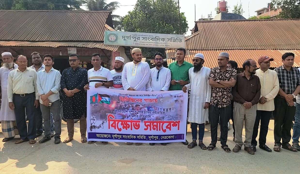 নিজস্ব প্রতিবেদক: গাজায় ইসরায়েলি বাহিনীর নৃশংস হামলা ও গণহত্যার প্রতিবাদে নেত্রকোনার দুর্গাপুরে বিক্ষোভ সমাবেশ করেছে দুর্গাপুর সাংবাদিক সমিতি।