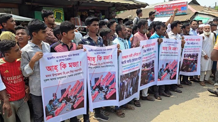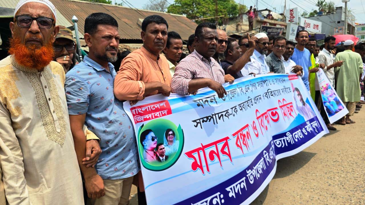 শনিবার (১২ এপ্রিল) বেলা সাড়ে ১১টায় মদন পৌরশহরের সিলেট বাসস্ট্যান্ড এলাকা থেকে বিক্ষো মিছিল বের শুরু হয়। পৌরশহরের প্রধান সড়ক প্রদক্ষিণ করে উপজেলার দলীয় কার্যালয়ের সামনে এসে শেষ হয়। পরে সেখানেসামনে মানবন্ধন করেন বিক্ষোভ মিছিলের অংশগ্রহণকারীরা।