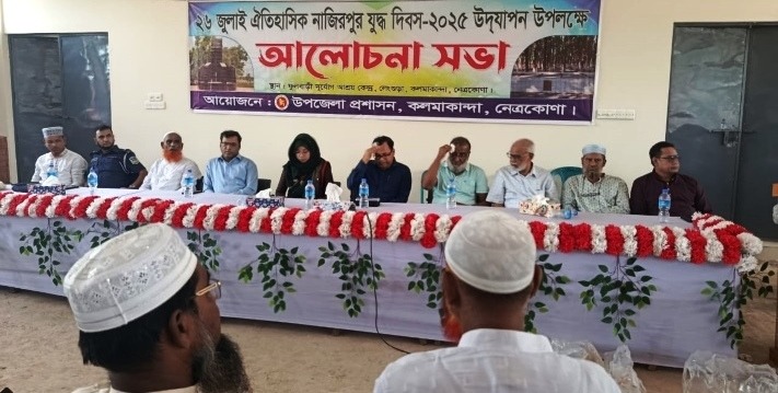 নিজস্ব প্রতিবেদক: ১৯৭১ সালের ২৬ জুলাই কলমাকান্দার নাজিরপুরে সংঘটিত হয়েছিল এক গৌরবোজ্জ্বল সম্মুখযুদ্ধ। পাকিস্তানি বাহিনীর বিরুদ্ধে সেই লড়াইয়ে শহীদ হন সাতজন বীর মুক্তিযোদ্ধা। তাঁদের আত্মত্যাগ স্মরণে কলমাকান্দা উপজেলা প্রশাসনের আয়োজনে শনিবার (২৬ জুলাই) পালিত হয়েছে ঐতিহাসিক নাজিরপুর যুদ্ধ দিবস-২০২৫।