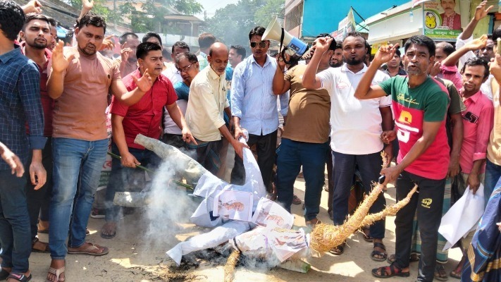 নিজস্ব প্রতিবেদক: নেত্রকোনা জেলার কলমাকান্দা উপজেলার নাজিরপুর ইউনিয়ন ভেঙে নতুন করে আনন্দপুর মডেল ইউনিয়ন পরিষদ গঠনের সিদ্ধান্তের প্রতিবাদে স্থানীয়দের উদ্যোগে মানববন্ধন ও বিক্ষোভ মিছিল হয়েছে এবং কুশপৌত্তলিকা দাহ করেছে।