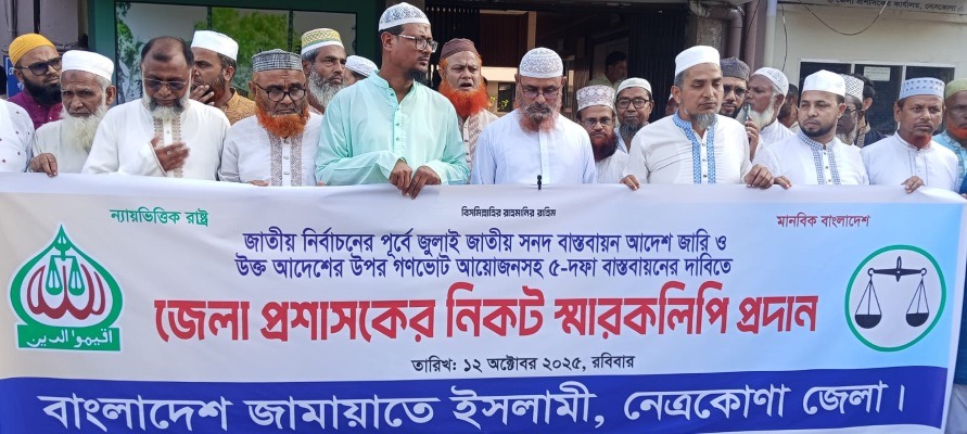 রবিবার (১২ অক্টোবর) বিকাল সাড়ে ৩টায় জেলা জামায়াতের আমির অধ্যাপক মাওলানা ছাদেক আহমাদ হারিসের নেতৃত্বে এ স্মারক লিপি প্রদান করা হয়। স্মারক লিপি প্রদানের পূর্বে প্রায় তিন শতাধিক নেতাকর্মীর একটি মিছিল নিয়ে জেলা জামায়াতের কার্যালয় হতে জেলা প্রশাসকের কার্যালয়ের সামনে অবস্থান করে।