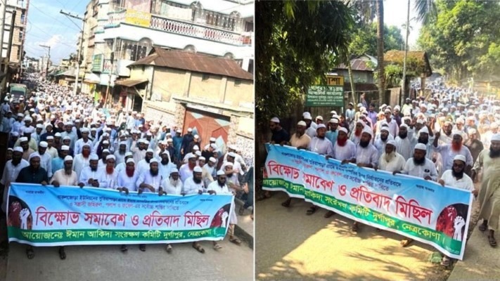 নিজস্ব প্রতিবেদক: মসজিদের ইমাম দম্পতিকে রাতভর নির্যাতনকারী আসামীদের দ্রুত গ্রেফতার ও দৃষ্টান্তমুলক শাস্তির দাবীতে নেত্রকোনার দুর্গাপুরে বিক্ষোভ মিছিল ও সমাবেশ অনুষ্ঠিত হয়েছে। বৃহস্পতিবার (২৩ অক্টোবর) দুপুরে ঈমান আক্বিদা সংরক্ষণ কমিটির আয়োজনে এ সমাবেশ অনুষ্ঠিত হয়।