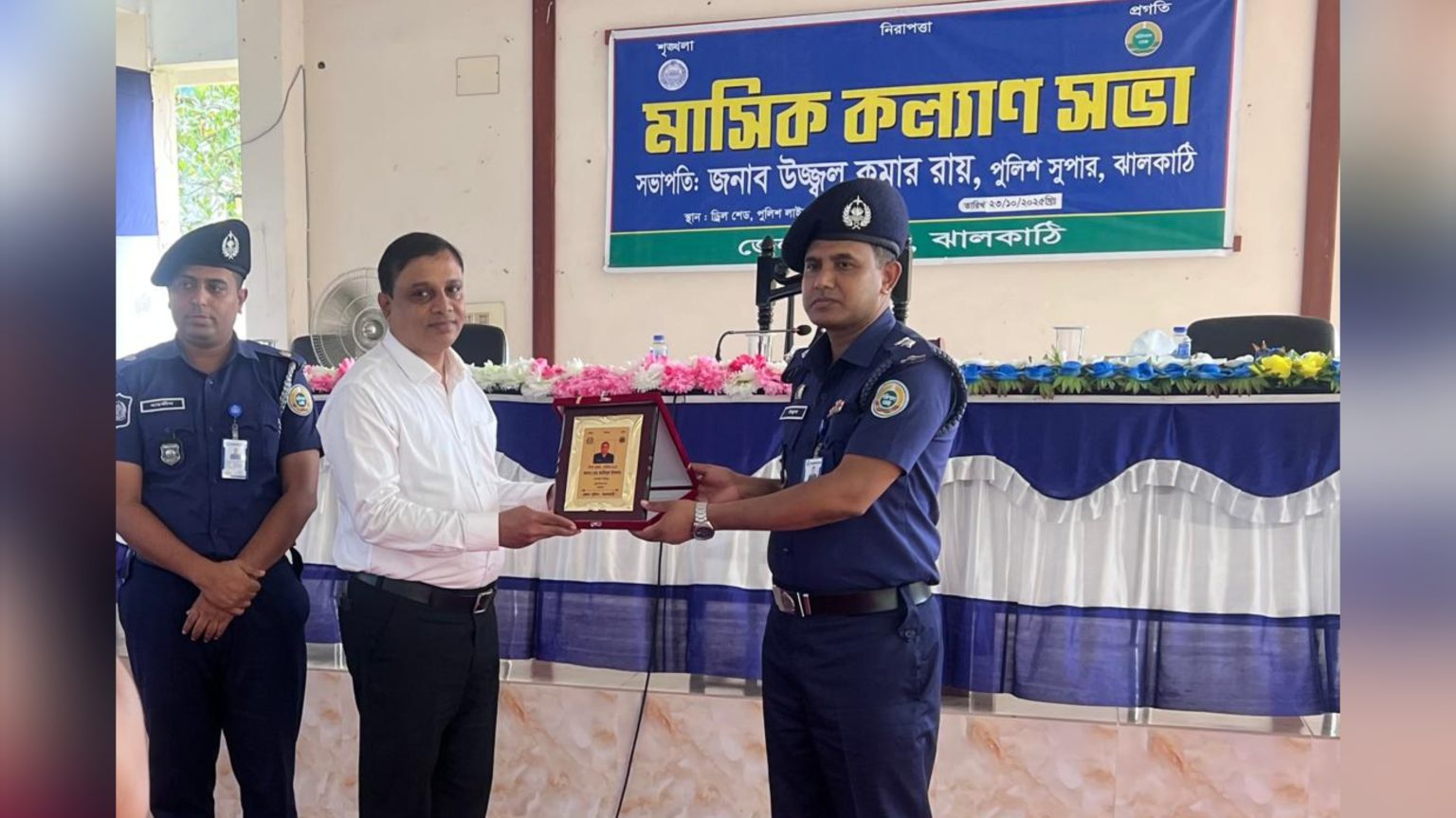 বৃহস্পতিবার ( ২৩ অক্টোবর ) মাসিক কল্যাণ ও অপরাধ সভায় পুলিশ সুপার উজ্জ্বল কুমার রায় তাকে ক্রেস্ট ও সনদপত্র প্রদান করেন।