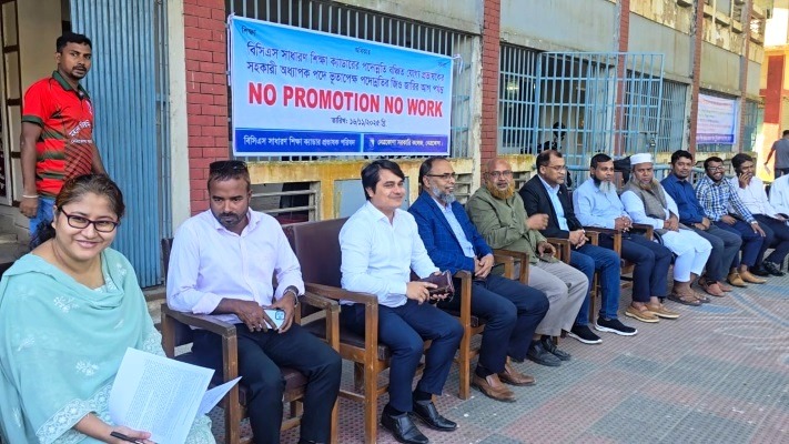 মঙ্গলবার (১৮ নভেম্বর) সকাল থেকে ‌‌‌’No Promotion No Work’ এই প্রতিপাদ্যে কলেজের প্রশাসনিক ভবনের সামনে বিসিএস সাধারণ শিক্ষা ক্যাডার প্রভাষক পরিষদের উদ্যোগে এ কর্মসূচি পালন করেন তারা।