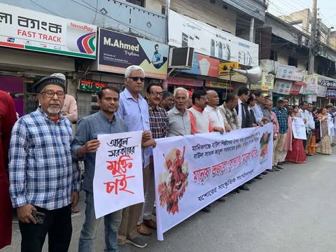 এটি বিচ্ছিন্ন ঘটনা নয়—এটি সংগঠিত ধর্মীয় উগ্রতার প্রকাশ। এই হামলা আমাদের সংস্কৃতি, মানবিকতা ও জাতীয় পরিচয়ের ওপর সরাসরি আঘাত।” বক্তারা দাবি জানান,বাউল সম্রাট আবুল সরকারের নিঃশর্ত মুক্তি মানিকগঞ্জে হামলাকারীদের গ্রেফতার ও বিচার সংস্কৃতিবিরোধী উগ্রতা দমনে রাষ্ট্রীয় উদ্যোগ ও নিরাপত্তা নিশ্চয়তা বিক্ষোভ মিছিল টাউন হল মাঠে সমাপ্ত প্ল্যাকার্ড ফেস্টুনে ভরে ওঠে শহর সমাবেশ শেষে বিশাল বিক্ষোভ মিছিল গাড়িখানা রোড থেকে যশোর শহরের প্রধান প্রধান সড়ক প্রদক্ষিণ করে টাউন হল মাঠে এসে শেষ হয়।