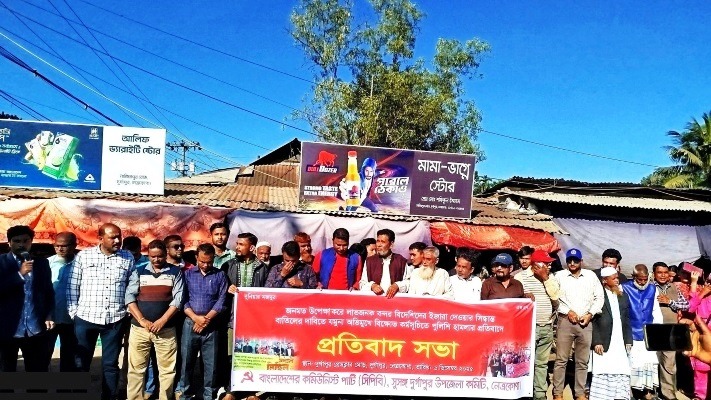 নিজস্ব প্রতিবেদক: জনমতের সুস্পষ্ট ইচ্ছা উপেক্ষা করে লাভজনক চট্টগ্রাম বন্দর বিদেশী কোম্পানির কাছে ইজারা দেওয়ার সরকারি সিদ্ধান্ত বাতিলের দাবিতে আয়োজিত ‘‘যমুনা অভিমুখে বিক্ষোভ কর্মসূচিতে’’ পুলিশের ন্যাক্কারজনক হামলার তীব্র প্রতিবাদে নেত্রকোনার দুর্গাপুরে এক প্রতিবাদ সভা অনুষ্ঠিত হয়েছে।