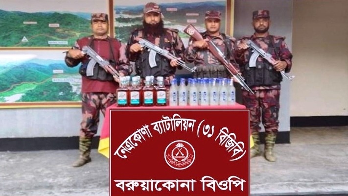 এ অভিযানে ওই বিওপি’র দায়িত্বপূর্ণ সীমান্ত পিলার ১১৮০/২-এস হতে আনুমানিক চারশো গজ বাংলাদেশের অভ্যন্তরে, কলমাকান্দা উপজেলার রংছাতি ইউনিয়নে বটতলা এলাকা থেকে মালিকবিহীন ভারতীয় ‘এমসি ডুয়েলস’ ও ‘আইস ভদকা’ নামক, এই দুই ব্র্যান্ডের ৭২ বোতল বিদেশী মদ জব্দ করতে সক্ষম হয় বিজিবি’র সদস্যরা।