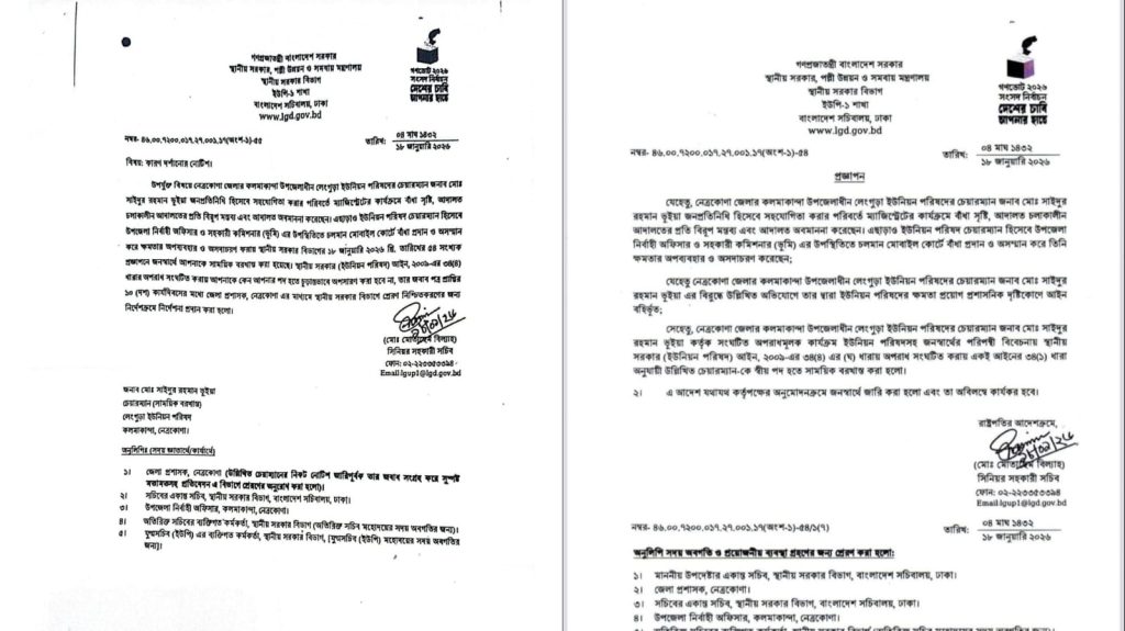 স্থানীয় সরকার (ইউনিয়ন পরিষদ) আইন অনুযায়ী জনস্বার্থে সাময়িক বরখাস্তের বিধান থাকলেও, প্রশাসনিক সিদ্ধান্ত গ্রহণের ক্ষেত্রে প্রক্রিয়াগত ন্যায়বিচার (Procedural Justice) কতটা অনুসরণ করা হয়েছে- তা নিয়েই মূলত প্রশ্ন উঠছে।