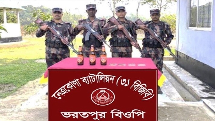 বিজিবি সূত্রে জানা গেছে, আজ (মঙ্গলবার) দুপুরের দিকে নিজস্ব গোয়েন্দা তথ্যের ভিত্তিতে নেত্রকোনা ব্যাটালিয়নের (৩১ বিজিবি) অন্তর্গত ভারতপুর বিওপি’র (বর্ডার অবজারবেশন পোষ্ট) চার সদস্যের একটি বিশেষ টহল দল মাদক বিরোধী অভিযান পরিচালনা করে। সীমান্ত মেইন পিলার ১১৬৮/৪-এস হতে প্রায় আড়াইশো গজ বাংলাদেশের অভ্যন্তরে ভারতপুর নামক এলাকায় অভিযান চালিয়ে মালিকবিহীন অবস্থায় তিন বোতল ভারতীয় ‘কিংফিশার’ ব্র্যান্ডের মদ এবং ৮০ পিস ‘ট্যাপেন্টাডল’ ট্যাবলেট উদ্ধার করে টহল দলটি।