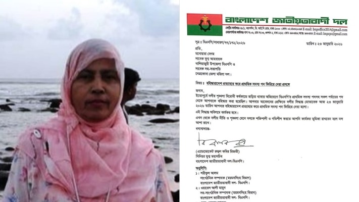 চিঠিতে আরও বলা হয়, দল আশা প্রকাশ করে যে মনোয়ারা বেগম এখন থেকে দলীয় নীতি ও শৃঙ্খলা মেনে দলকে শক্তিশালী ও গতিশীল করতে কার্যকর ভূমিকা রাখবেন।