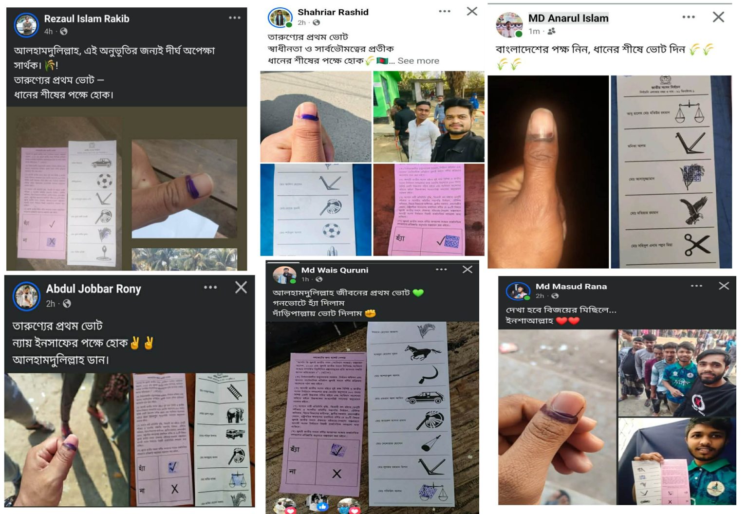 ছাত্রদলের যুগ্ম আহ্বায়ক আনারুল ইসলাম বলেন,“জীবনে তো ভোট দেয়নি, অনেক দিন পরে ভোট দিয়েছি, ভোটের উৎসবে অত ভাবিনি পোস্ট দিয়ে দিছি।”