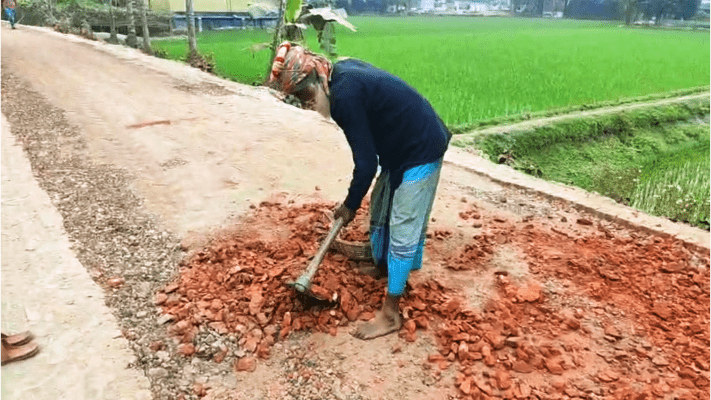 সোমবার (২ মার্চ) সরেজমিনে এবং এলাকাবাসীর সাথে কথা বলে জানা যায়, রাস্তায় নতুন এবং মানসম্মত ইটের খোয়া ব্যবহারের কথা থাকলেও, অত্যন্ত নিম্নমানের (দুই বা তিন নম্বর) ইট ব্যবহার করা হচ্ছে। হাত দিয়ে চাপ দিলেই এসব ইট ভেঙে মাটির মতো গুঁড়ো হয়ে যাচ্ছে। রাস্তার পুরনো কার্পেটিং এবং এজিং এর ইট তুলে সেগুলোই ভেঙে পুনরায় রাস্তায় ব্যবহার করা হচ্ছে। খোয়ার সাথে প্রয়োজনীয় পরিমাণ বালু দেওয়া হচ্ছে না।