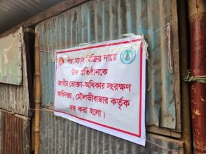পবিত্র মাহে রমাদানে নিত্যপণ্যের বাজারে তদারকিতে মৌলভীবাজার ভোক্তা অধিকার সংরক্ষণ অধিদপ্তরের অভিযান পরিচালনা করে।সোমবার (২রা মার্চ) শহরের পশ্চিম বাজারে অবস্থিত হৃদয় মিট হাউস নামের মাংসের দোকানটিতে পচা মাংস বিক্রির অপরাধে ভোক্তা অধিকার সংরক্ষণ অধিদপ্তর কর্তৃক বন্ধ ঘোষণার মাধ্যমে সিলগালা করা হয়।