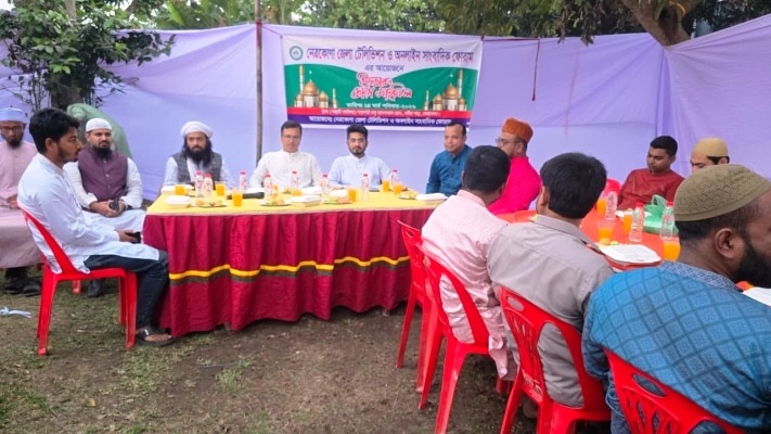 নিজস্ব প্রতিবেদক: পবিত্র মাহে রমজান উপলক্ষে নেত্রকোনা জেলা টেলিভিশন ও অনলাইন সাংবাদিক ফোরামের উদ্যোগে বর্ণাঢ্য ইফতার ও দোয়া মাহফিল অনুষ্ঠিত হয়েছে।