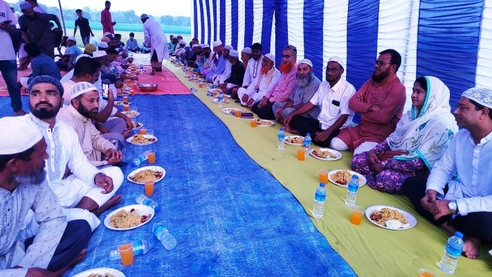 ইফতারের ঠিক পূর্ব মুহূর্তে ভাবগম্ভীর পরিবেশের সৃষ্টি হয়। এ সময় দেশ ও জাতির সার্বিক কল্যাণ, দেশবাসীর শান্তি, সমৃদ্ধি ও অগ্রগতি কামনা করে বিশেষ দোয়া ও মোনাজাত পরিচালনা করেন স্থানীয় প্রভাষক মোস্তফা কামাল। মোনাজাত শেষে আজানের ধ্বনির সাথে সাথে সুশৃঙ্খলভাবে বসে সকলে একত্রে ইফতার গ্রহণ করেন।