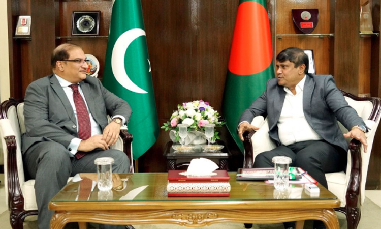প্রধানমন্ত্রীর প্রতিরক্ষা উপদেষ্টা ব্রিগেডিয়ার জেনারেল (অব.) ড. একেএম শামছুল ইসলামের সঙ্গে ঢাকা সেনানিবাসস্থ সশস্ত্র বাহিনী বিভাগে তার কার্যালয়ে আজ সোমবার ঢাকায় নিযুক্ত পাকিস্তানের হাইকমিশনার ইমরান হায়দার সৌজন্য সাক্ষাৎ করেন।