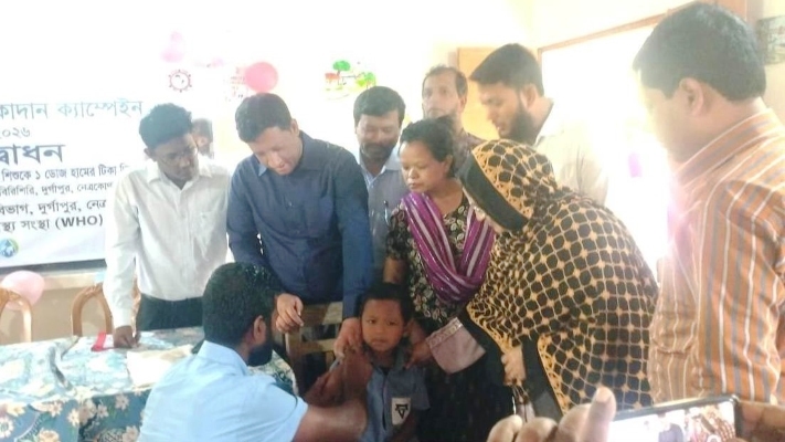 নিজস্ব প্রতিবেদক: নেত্রকোনার দুর্গাপুরে শিশুদের হাম ও রুবেলা সংক্রমণ সম্পূর্ণরূপে নিয়ন্ত্রণের লক্ষ্যে বিশেষ টিকাদান ক্যাম্পেইনের উদ্বোধন করা হয়েছে। সোমবার (২০ এপ্রিল) সকালে বিশ্ব স্বাস্থ্য সংস্থার (ডব্লিউএইচও) সহযোগিতায় এবং উপজেলা স্বাস্থ্য বিভাগের আয়োজনে এ কার্যক্রম শুরু হয়।