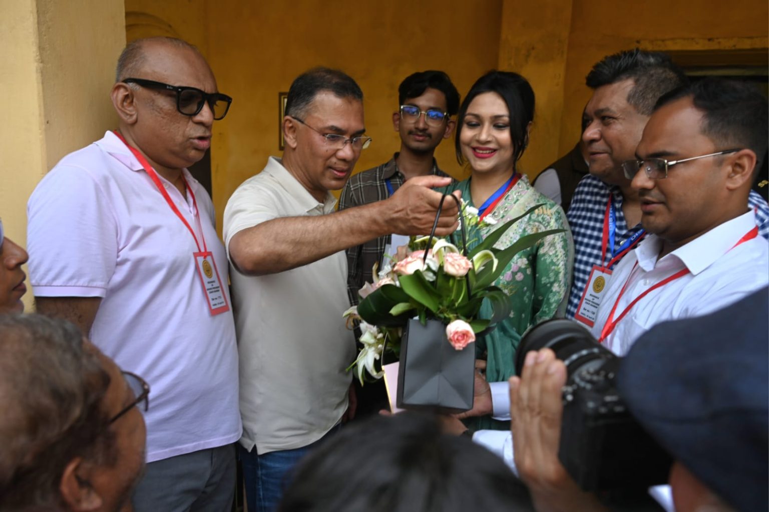 সঙ্গে ছিলেন তাঁর সহধর্মিণী ডা. জুবাইদা রহমান। এ সময় জিয়া পরিবারের সদস্যরা তাদের ফুল দিয়ে শুভেচ্ছা জানান।