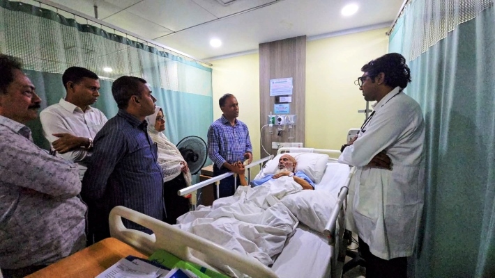 শনিবার (২৫ এপ্রিল) রাত সাড়ে ৮টার দিকে রাজধানীর বাংলাদেশ স্পেশালাইজড হাসপাতালে পৌঁছান তিনি। সেখানে চিকিৎসাধীন বর্ষীয়ান এই নেতার শয্যাপাশে কিছু সময় অবস্থান করেন এবং তার শারীরিক অবস্থার সার্বিক খোঁজখবর নেন।