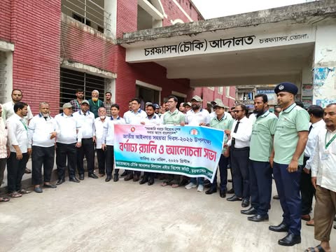 “সরকারি খরচে বিরোধ শেষ—সবার আগে বাংলাদেশ” এই প্রতিপাদ্যকে সামনে রেখে ভোলার চরফ্যাশনে যথাযোগ্য মর্যাদায় পালিত হয়েছে জাতীয় আইনগত সহায়তা দিবস-২০২৬। মঙ্গলবার (২৮ এপ্রিল) সকালে দিবসটি উপলক্ষে বাংলাদেশ আইনগত সহায়তা অধিদপ্তরের উদ্যোগে এবং চরফ্যাশন চৌকি আদালত লিগ্যাল এইড বিশেষ কমিটির আয়োজনে বর্ণাঢ্য র্যালি ও আলোচনা সভা অনুষ্ঠিত হয়। র্যালিটি আদালত প্রাঙ্গণ থেকে শুরু হয়ে উপজেলার গুরুত্বপূর্ণ সড়ক প্রদক্ষিণ করে পুনরায় একই স্থানে এসে শেষ হয়। পরে চৌকি আদালত প্রাঙ্গণে অনুষ্ঠিত হয় আলোচনা সভা।