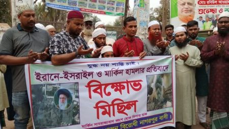 টাঙ্গাইল প্রতিনিধিঃ ইরানে হামলার প্রতিবাদে টাঙ্গাইলের নাগরপুর উপজেলায় মানববন্ধন করেছে তৌহিদী জনতা। ৬ মার্চ শুক্রবার জুম্মার নামাজের পর নাগরপুর সরকারি কলেজের সামনে, ধর্মপ্রাণ মুসল্লীরা…