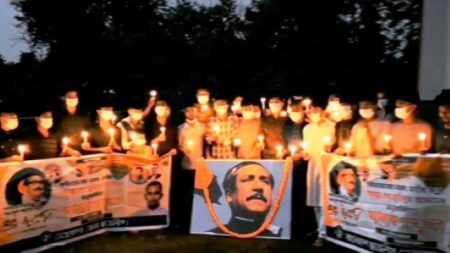 নিজস্ব প্রতিবেদক: শেখ মুজিবুর রহমানের ১০৬তম জন্মবার্ষিকী উপলক্ষে নেত্রকোনায় আলোক প্রজ্জ্বলন ও বিনম্র শ্রদ্ধা নিবেদন কর্মসূচি পালন করেছে সরকার কর্তৃক নিষিদ্ধ সংগঠন বাংলাদেশ ছাত্রলীগ।…